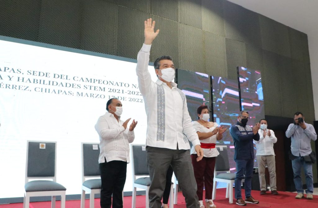 En ese marco, el gobernador Rutilio Escandón Cadenas felicitó a las y los jóvenes participantes, y los convocó a aprovechar sus conocimientos, capacidades y talento en la creación de proyectos de alto impacto social que aporten al mejoramiento de las actividades de la industria, el campo, la medicina, entre otros rubros, lo que se reflejará en un mayor bienestar, progreso y desarrollo de los pueblos y comunidades de Chiapas y México.
