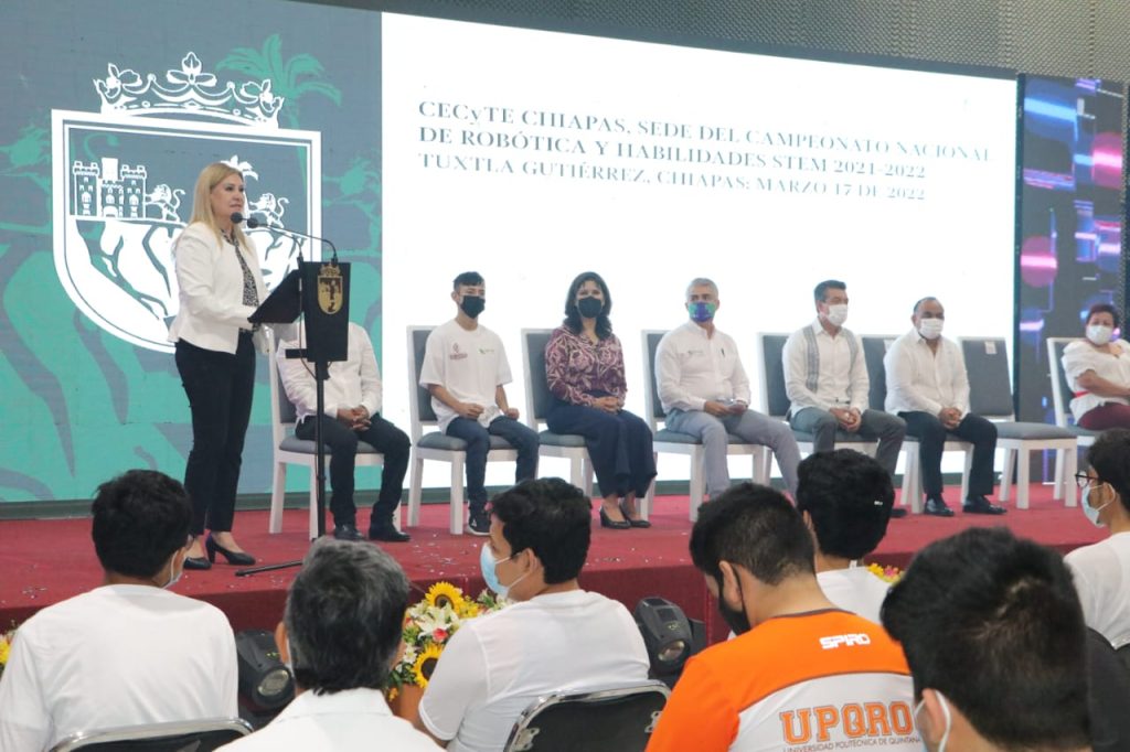La Secretaría de Educación expuso la relevancia de este certamen, en el que jóvenes chiapanecos y de diversas partes del país demostrarán, mediante un trabajo en equipo, su talento y destreza en el campo de la ciencia y la tecnología, así como sus habilidades de liderazgo y compromiso con la sociedad y el entorno, tal como se están preparando desde sus escuelas para tener la capacidad de responder a los retos y diversas problemáticas que la comunidad presente, mediante el uso de las tecnologías.