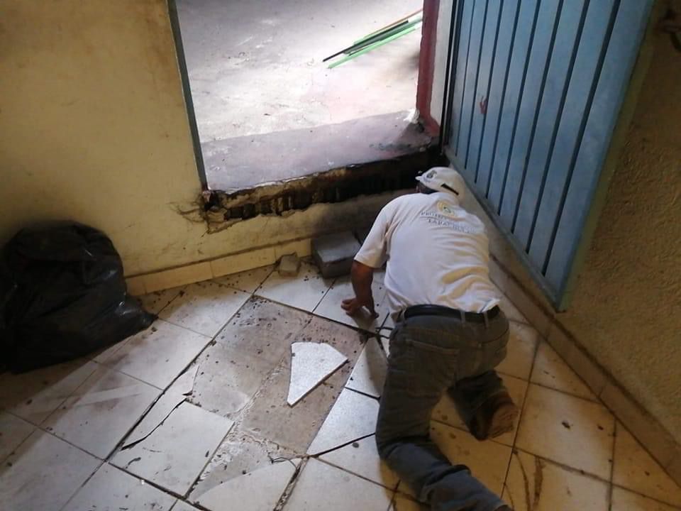 Tapachula, Chiapas.- Un enjambre de abejas localizado en la azotea y una puerta de la Unidad Administrativa del Gobierno del Estado en Tapachula, fue controlado por personal del Departamento de Administración de Emergencias de la Dirección de Protección Civil.